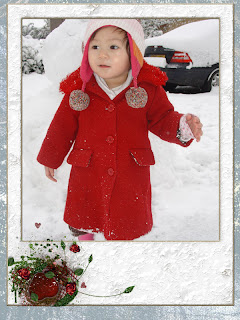 Someone had already made a snowman bigger and taller than SW! She was abit puzzled by the snow, but as soon as she saw the snowman, she said "Mow-man!" (Snowman). She tried to touch it, she stood at the spot for a long time, putting her hand out & trying to catch the snow.. then she walked around abit, fell on her knees! It's sooo cold!